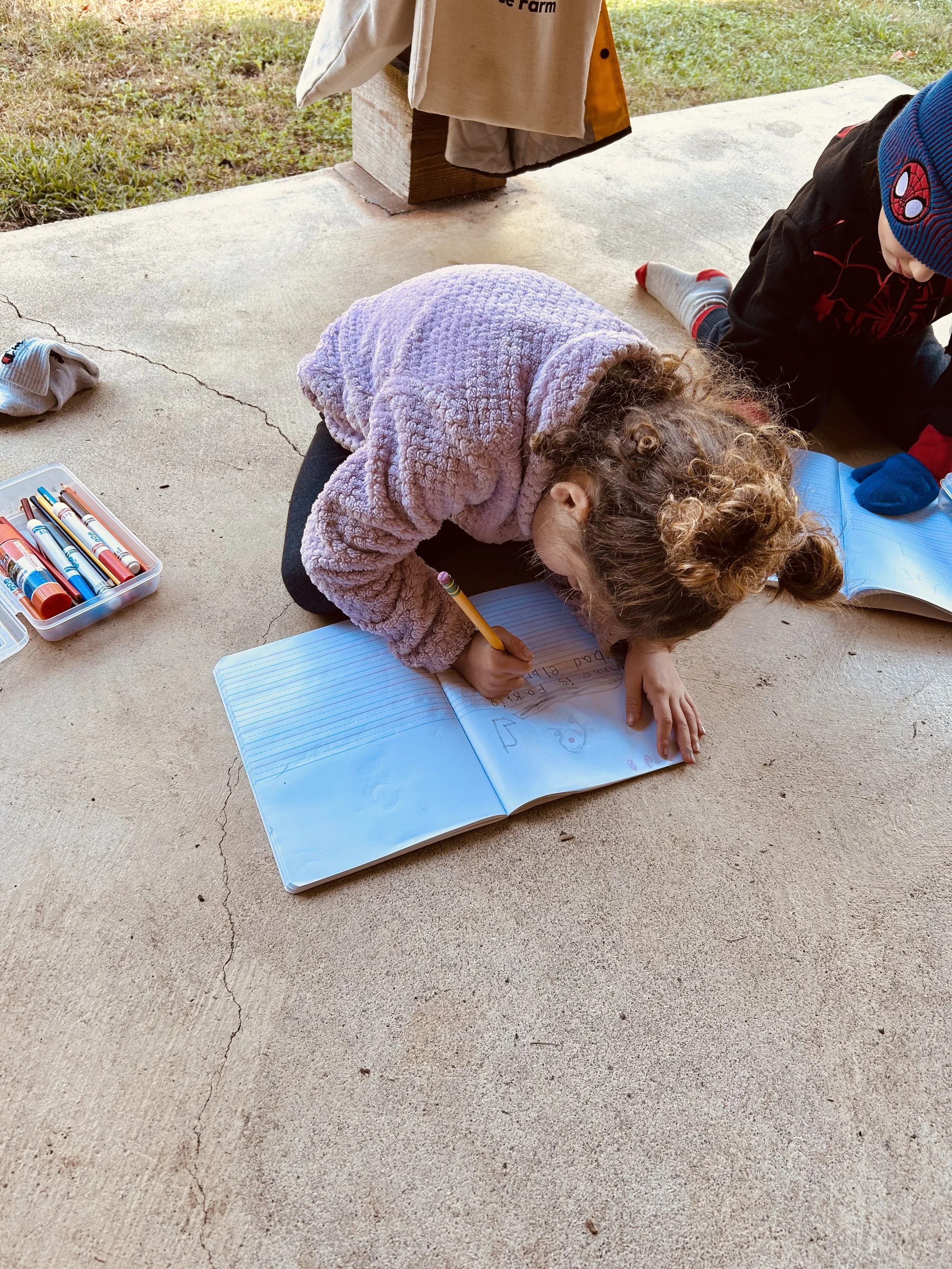 We adhere to a flexible daily rhythm over a strict schedule. Some days we spend more time on subjects in which the students seem to display special interest. We have some basic farm chores woven throughout each day (collecting eggs, changing out water for chickens and feeding them), as well as ample time spent immersed in nature and studying native plants.